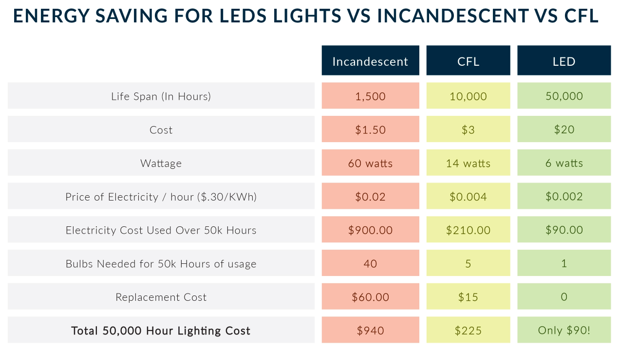 إذا كان مطلوبًا من مكتبك أو منشأتك أو مبناك أو شركتك تطوير خطة للحفاظ على الطاقة،إضاءة LEDأداة ممتازة تساعدك على تحقيق أهدافك في توفير الطاقة. معظم الناس يتعرفون على مصابيح LED أولاً بفضل كفاءتها العالية. إذا لم تكن مستعدًا لاستبدال جميع التركيبات دفعة واحدة (خاصةً إذا كانت ميزانيتك لا تسمح بذلك أو إذا كانت التركيبات الحالية لا تزال صالحة للاستخدام)، ففكر في مصابيح LED التي يمكن شراؤها بكميات كبيرة للحصول على خصم (أو، كما تقدم HitLights، خصومات لأصحاب الحسابات التجارية). ضع خطة للاستبدال الذكي أيضًا: عندما تتآكل التركيبات القديمة، استبدلها بمصابيح LED. هذا يسمح لك بجني فوائد مصابيح LED تدريجيًا دون التكلفة الأولية التي قد تثني بعض المشترين.