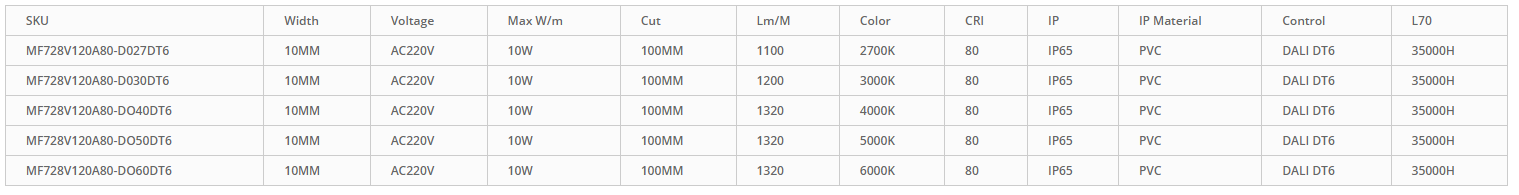 La tecnología LED de alto voltaje es un sistema de iluminación visual con alta luminosidad y bajo consumo energético. Ofrece numerosas ventajas, como una larga vida útil de hasta 50 000 horas y protección IP65 contra el agua. El disipador de calor permite una refrigeración rápida y uniforme, manteniendo los LED a una temperatura óptima de funcionamiento para una mayor durabilidad. Los conectores están clasificados para 110 V, por lo que no se produce ninguna caída de tensión a lo largo de la tira. Esto significa que el LED superior se iluminará con el mismo brillo que el inferior. Otras características: Tubo de 10 mm de ancho con dos tapas laterales que mejoran la estética y protegen del polvo y los elementos corrosivos.